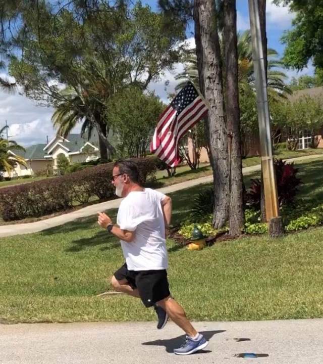 Grandpa runs.